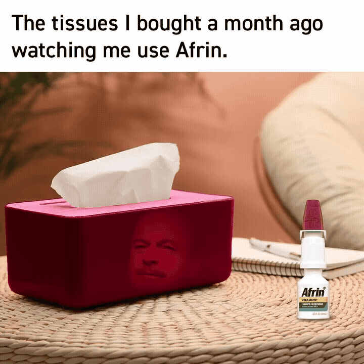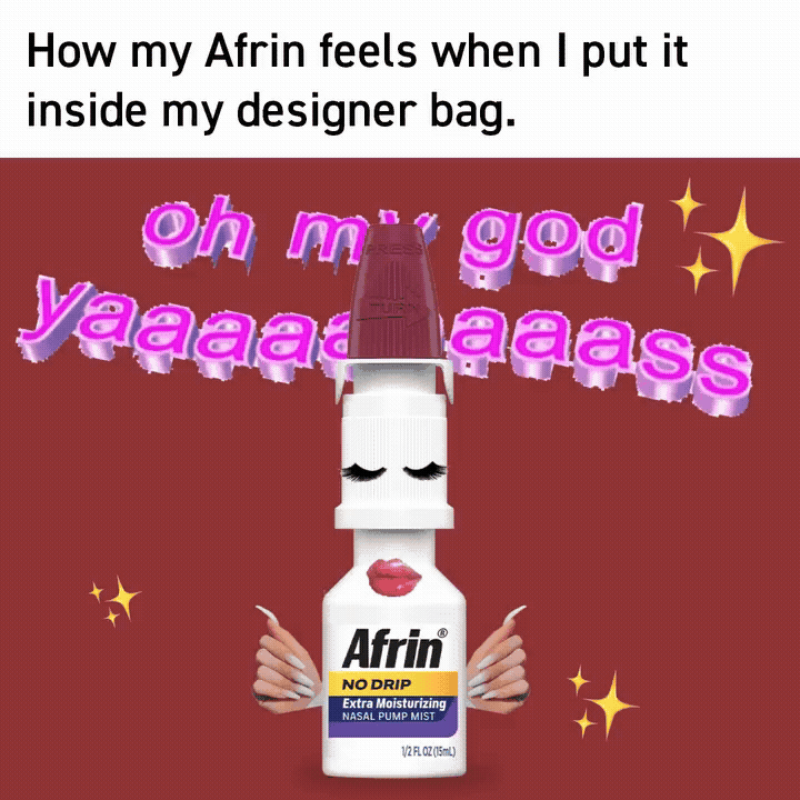 Meanwhile, on the Afrin account, we went from studio shoots to screenshots. The work above is meticulously produced, but this bonus section leans into lo-fi, lightning-quick memes. No production crew required.