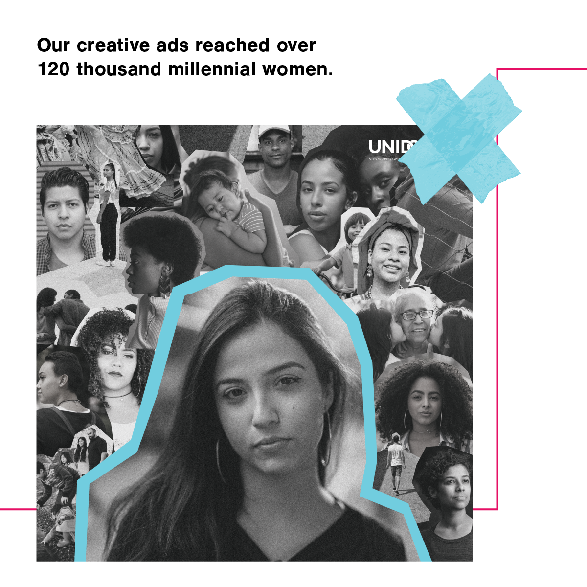 Targeting millennial women, the campaign reached over 120,000 people, engaging newly registered voters with copy that was urgent, passionate, and carefully crafted to translate into Spanish without losing its power.